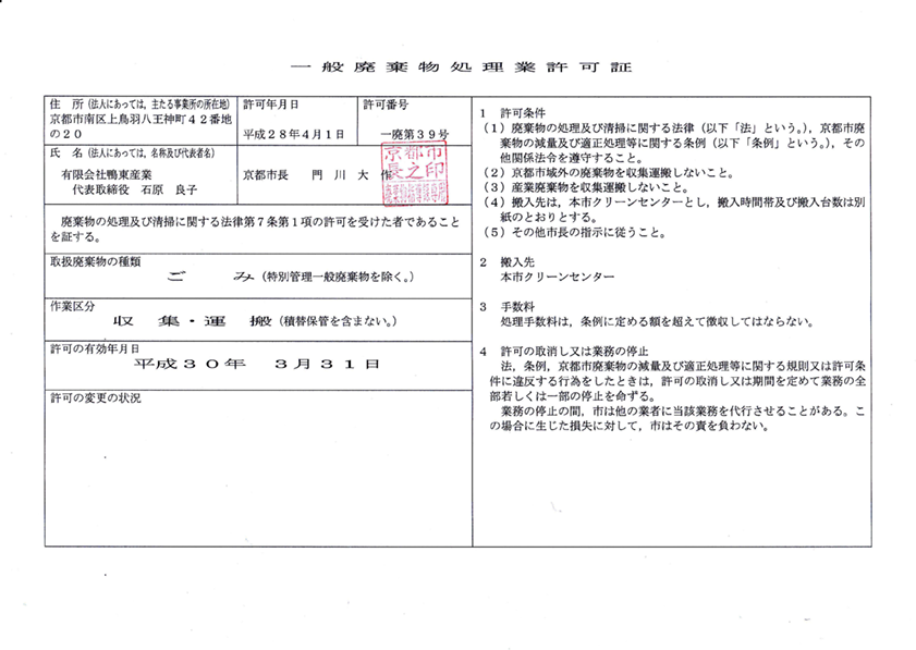| 社名 | 有限会社 鴨東産業 |